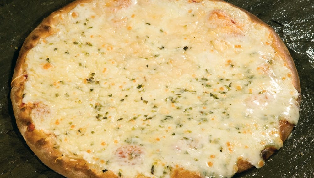 Pizza con masa de brócoli y pollo
